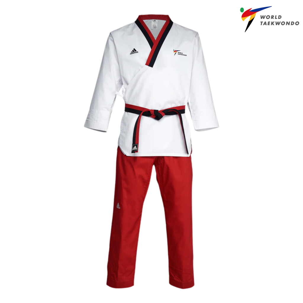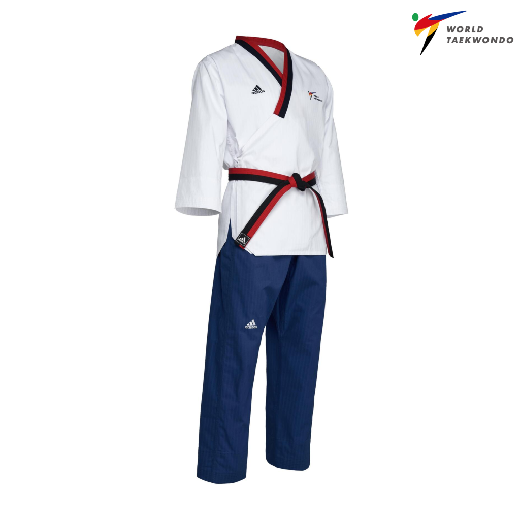 Pakaian Taekwondo Adidas Adi-Flex diluluskan oleh WT dan direka dengan fleksibiliti serta keselesaan maksimum.